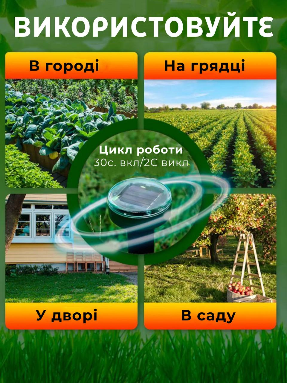 Легкий і компактний пристрій, потрібно лише встромити в землю на 20см та увімкнути