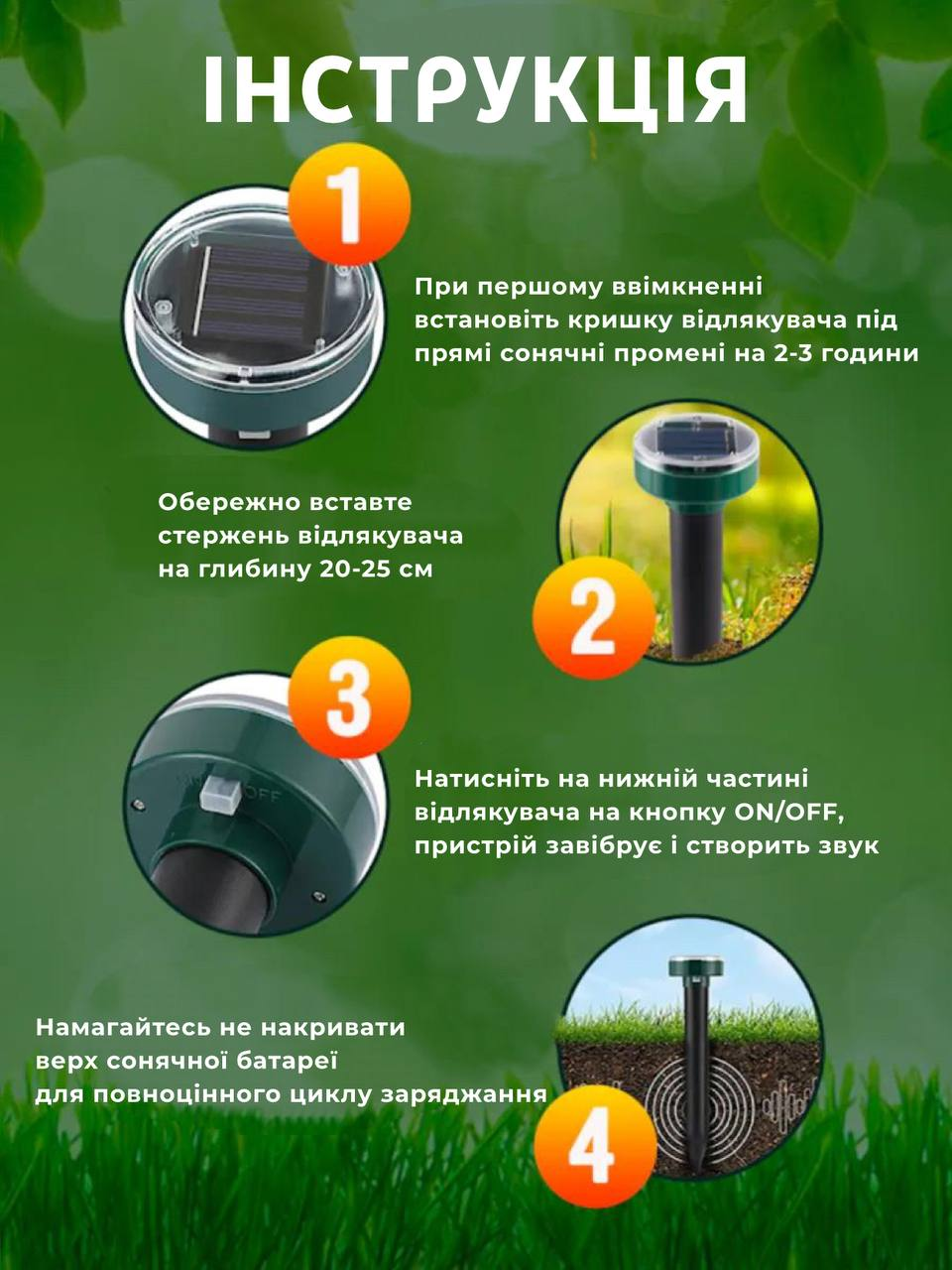 Чим щільніший ґрунт, тим ефективніше працюватиме пристрій. Відлякувач змій, гризунів необхідно розміщувати в місці з прямим доступом сонячних акумуляторів.